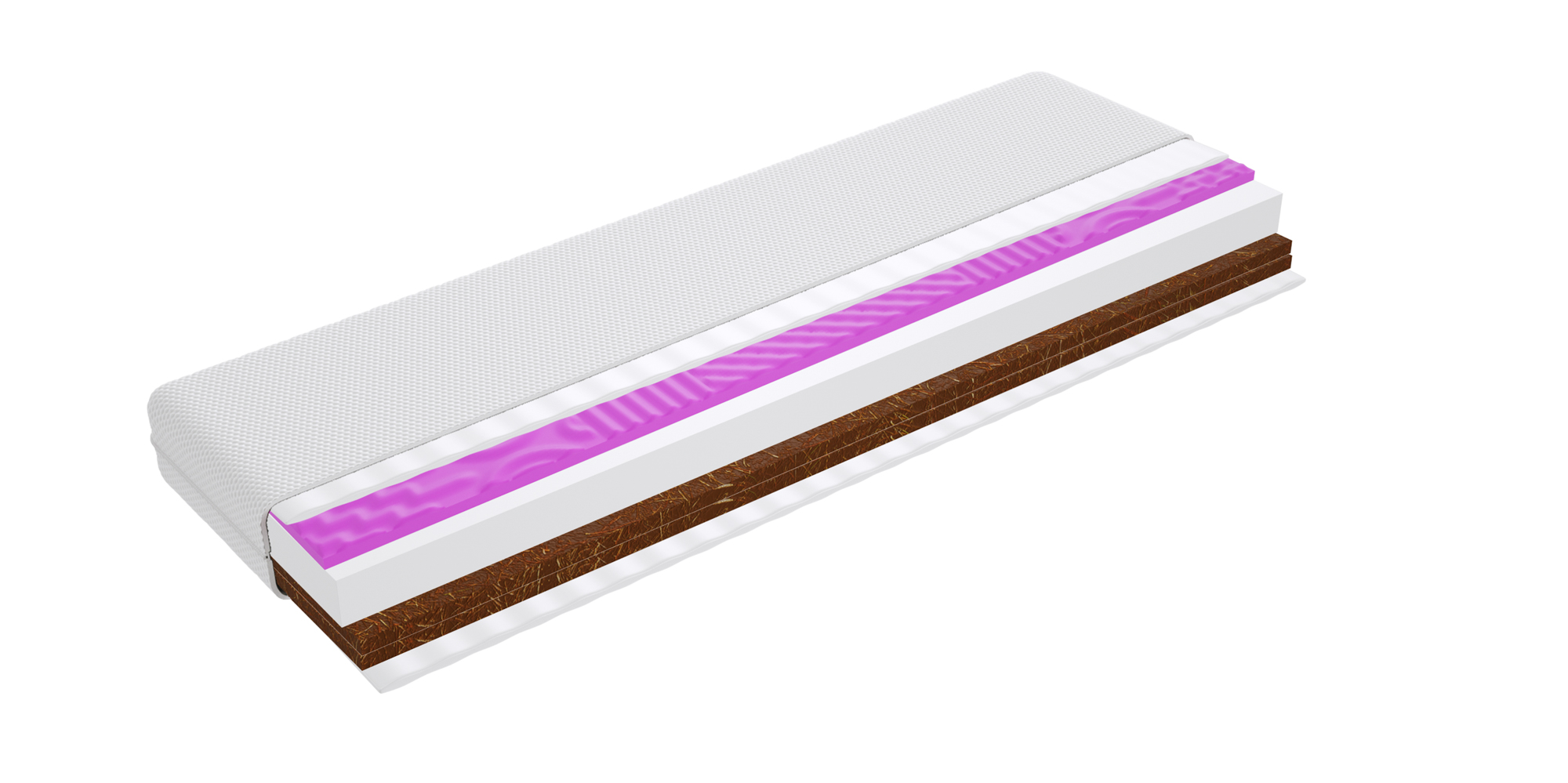 – warstwa kokosowa utwardza i usztywnia powierzchnię materaca. Jest wykonana z włókien łupiny orzecha kokosowego. Włókna są twarde i sztywne i zawierają mnóstwo soli mineralnych, których zadaniem jest ochrona owocu przed wnikaniem do wewnątrz bakterii, grzybów i innych szkodliwych drobnoustrojów. Właściwość tą zachowuje również mata kokosowa. Jest antyalergiczna, antybakteryjna i antygrzybiczna. Mata kokosowa jest przewiewna, odporna na wilgoć, wchłania jej nadmiar i odparowuje do otoczenia. Zapewnia to komfort osobom cierpiącym na nadmierną potliwość.