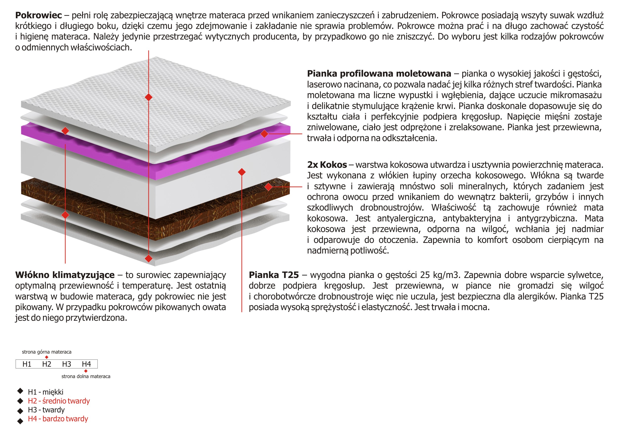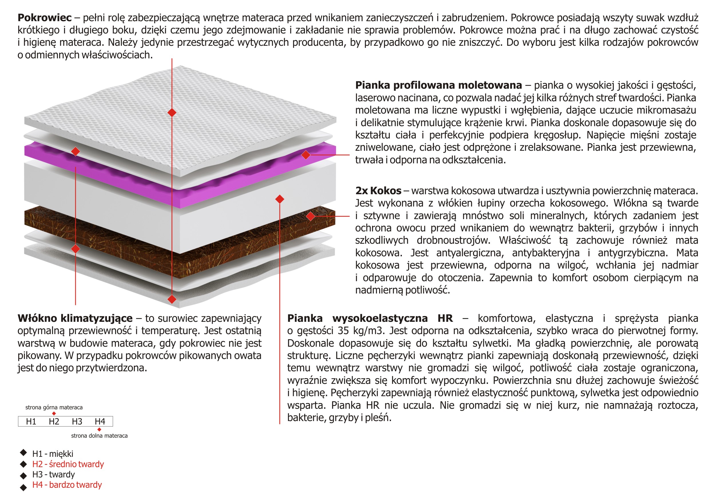 Twardość materaca H2 Sredniotwardy, H4 Bardzo Twardy