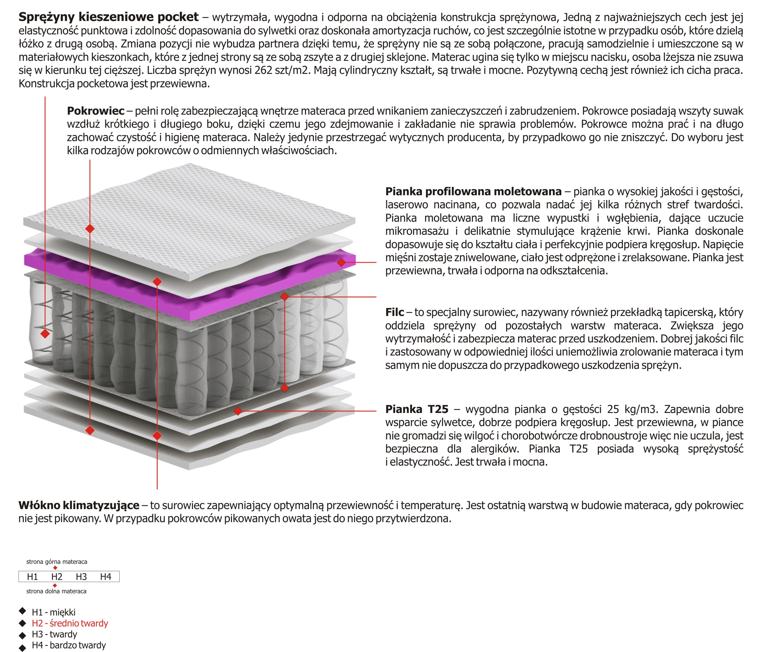 Twardość materaca H2 Sredniotwardy