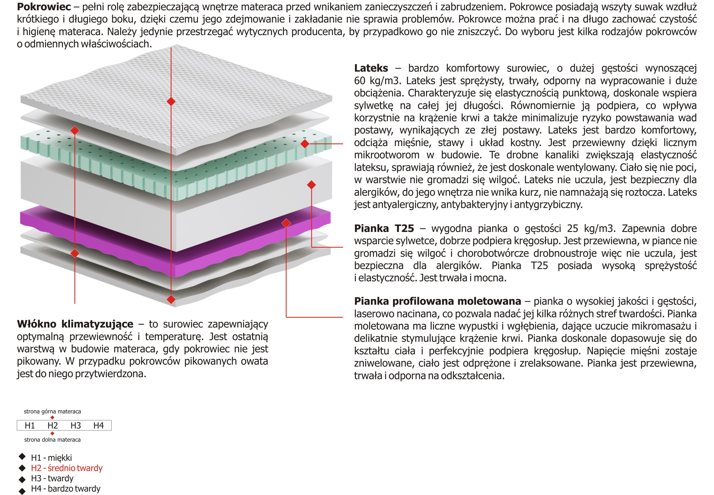 – wygodna pianka o gęstości 25 kg/m3. Zapewnia dobre wsparcie sylwetce, dobrze podpiera kręgosłup. Jest przewiewna, w piance nie gromadzi się wilgoć i chorobotwórcze drobnoustroje więc nie uczula, jest bezpieczna dla alergików. Pianka T25 posiada wysoką sprężystość i elastyczność. Jest trwała i mocna.
