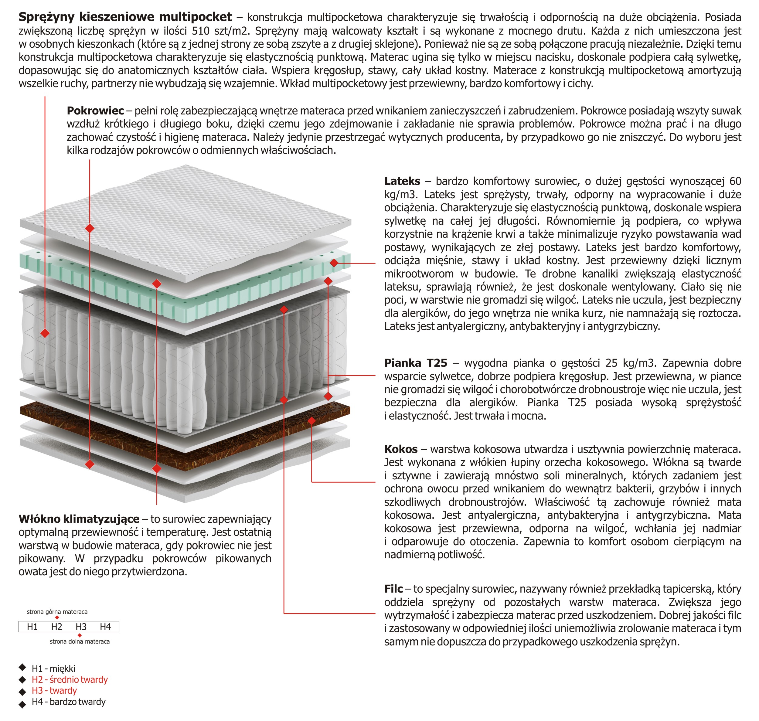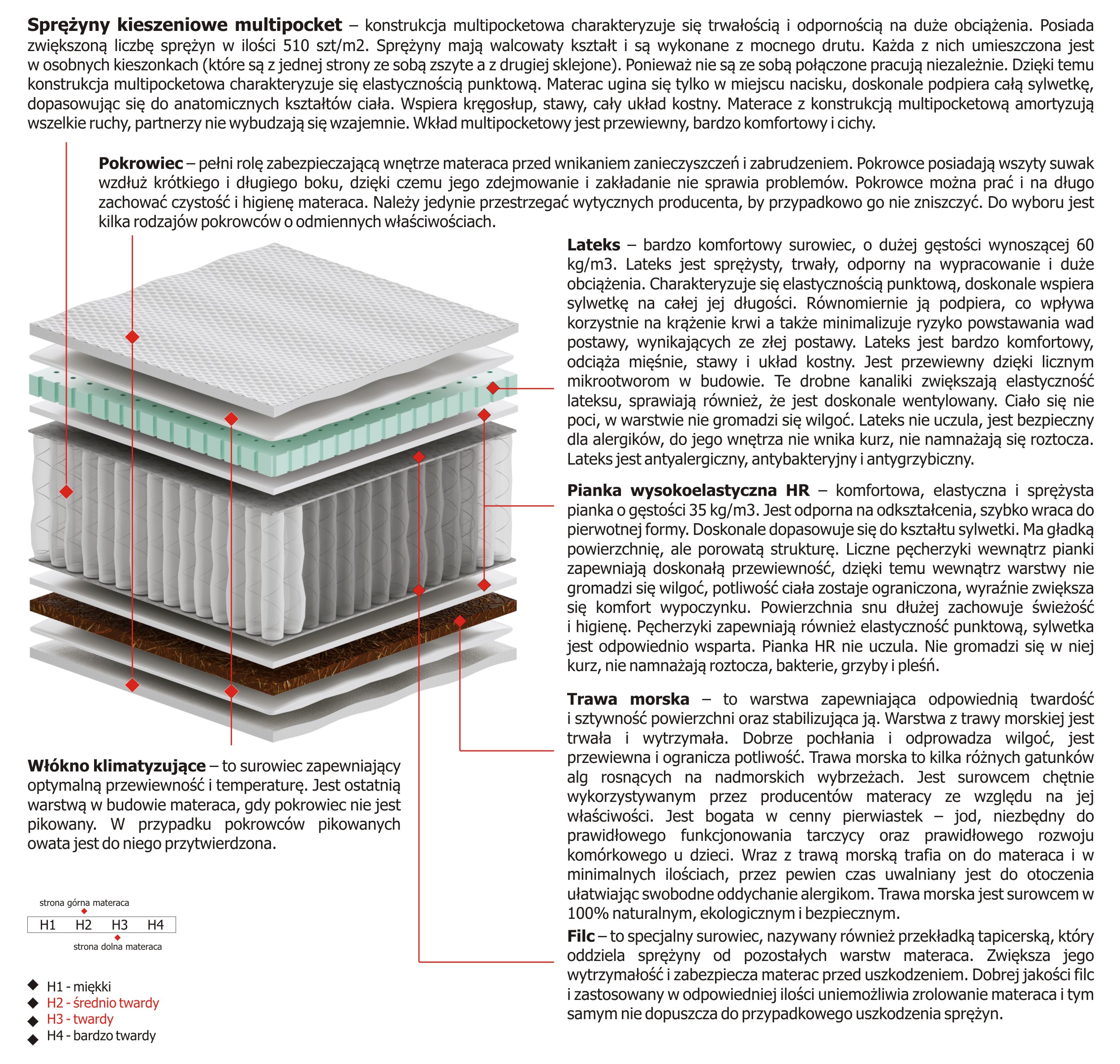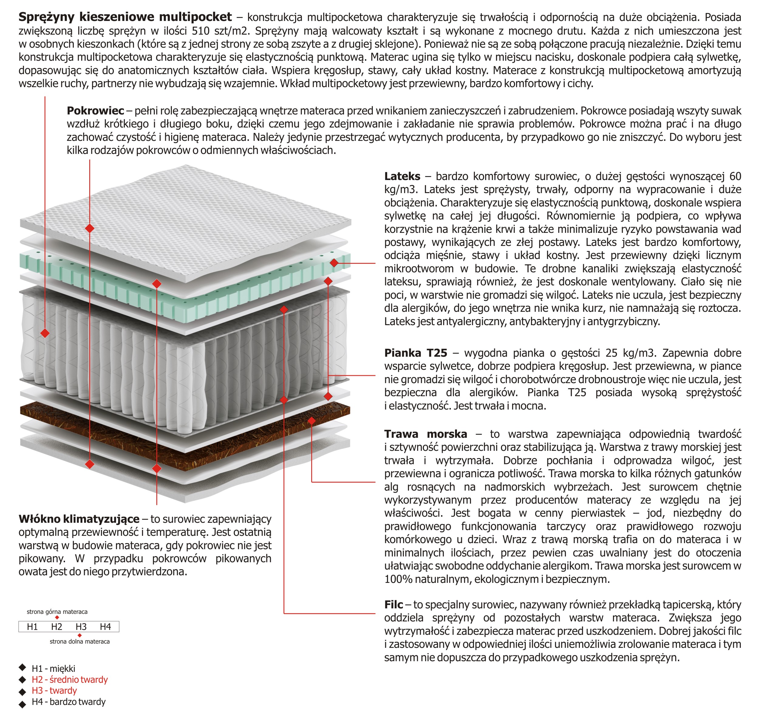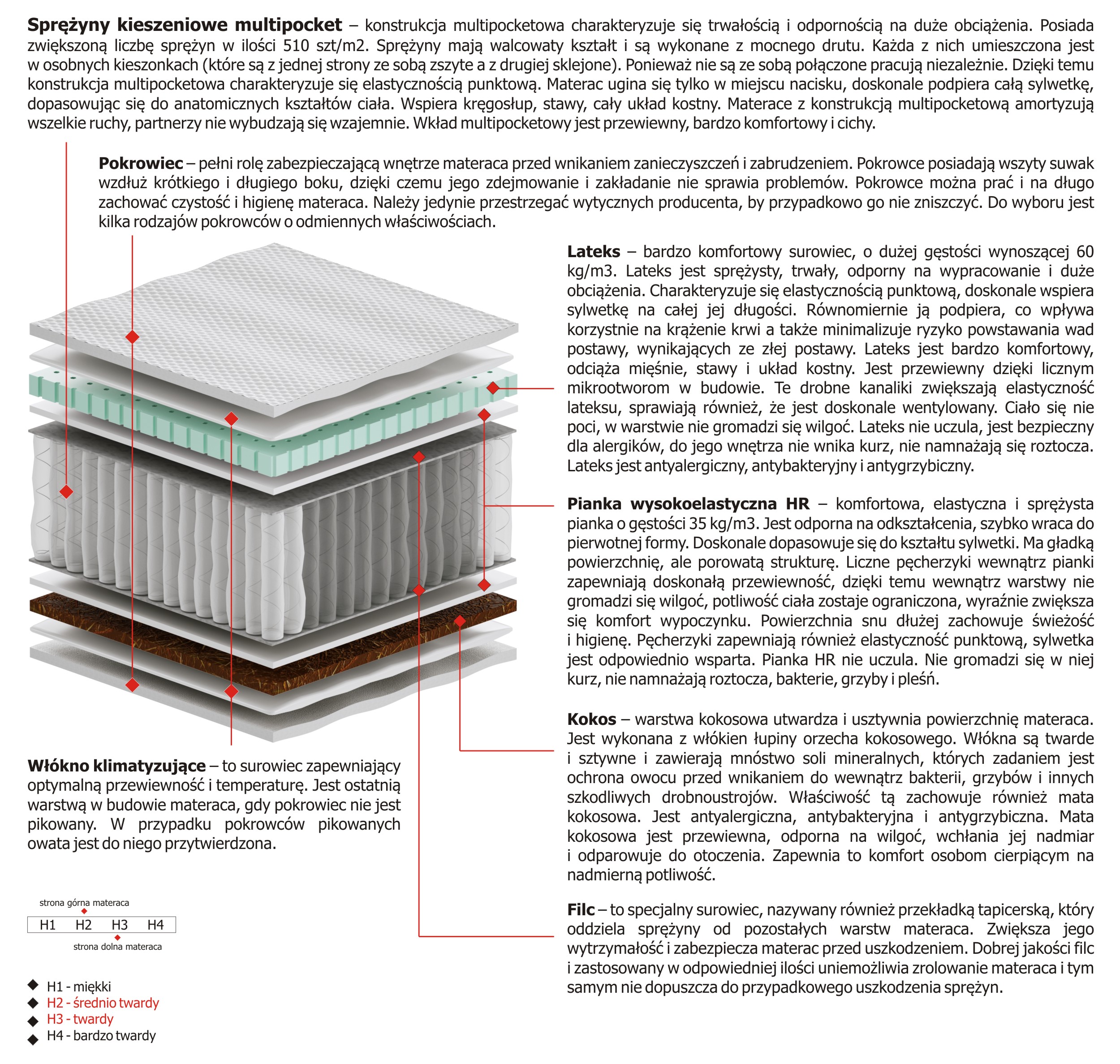 Twardość materaca H2 Sredniotwardy, H3 Twardy