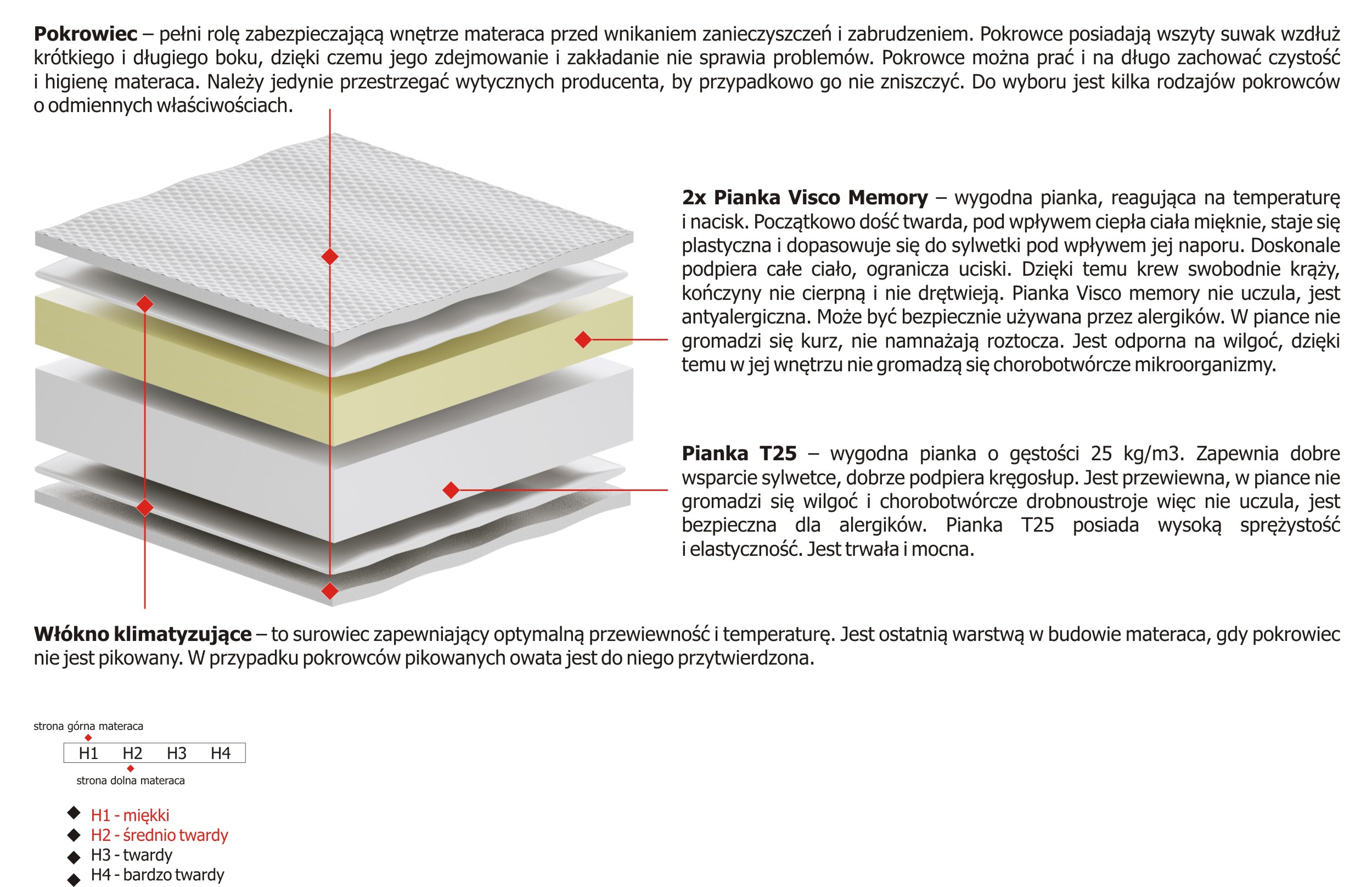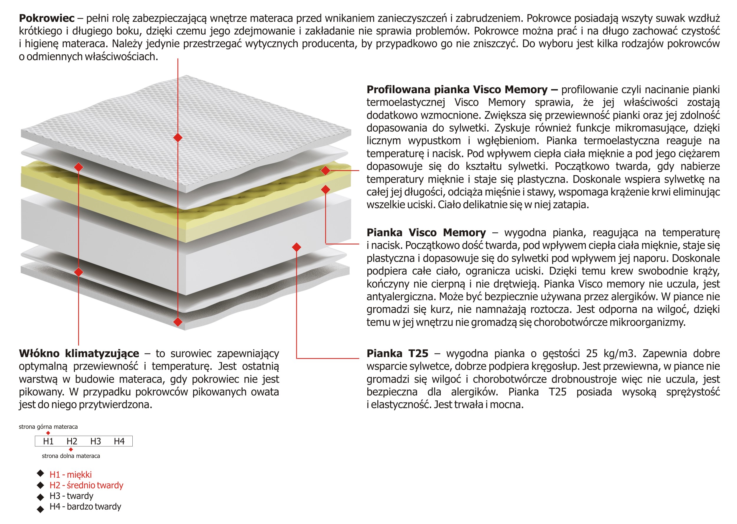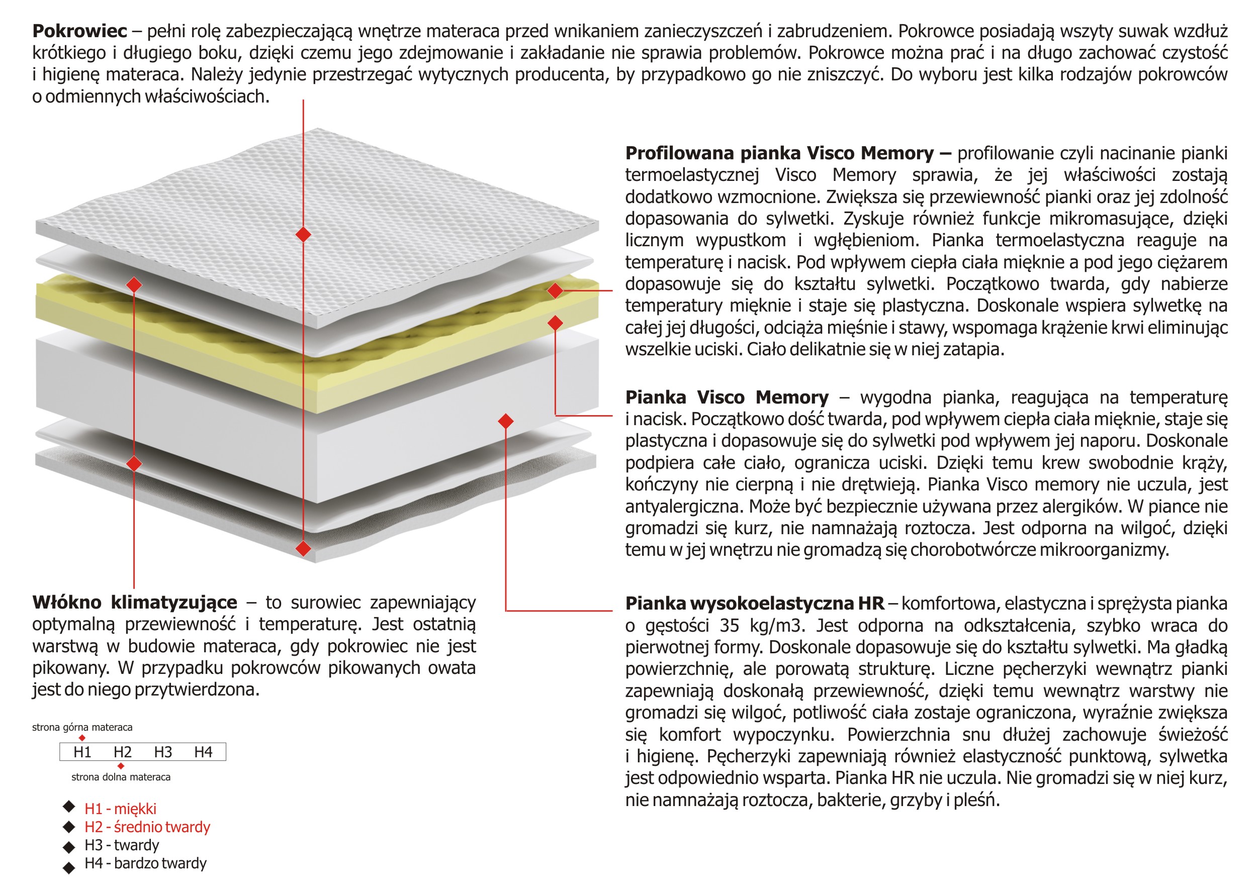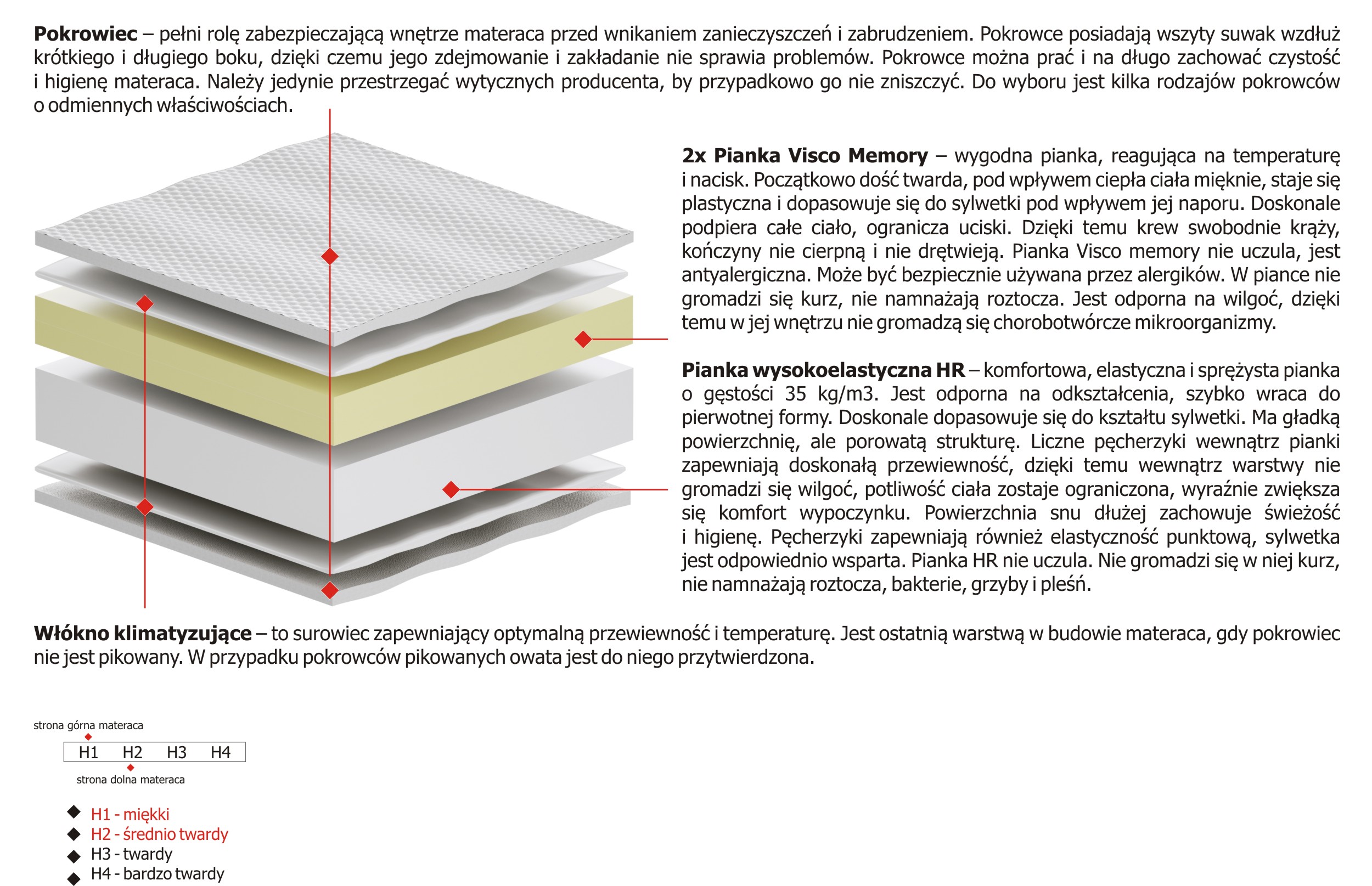 Twardość materaca H1 Miekki, H2 Sredniotwardy